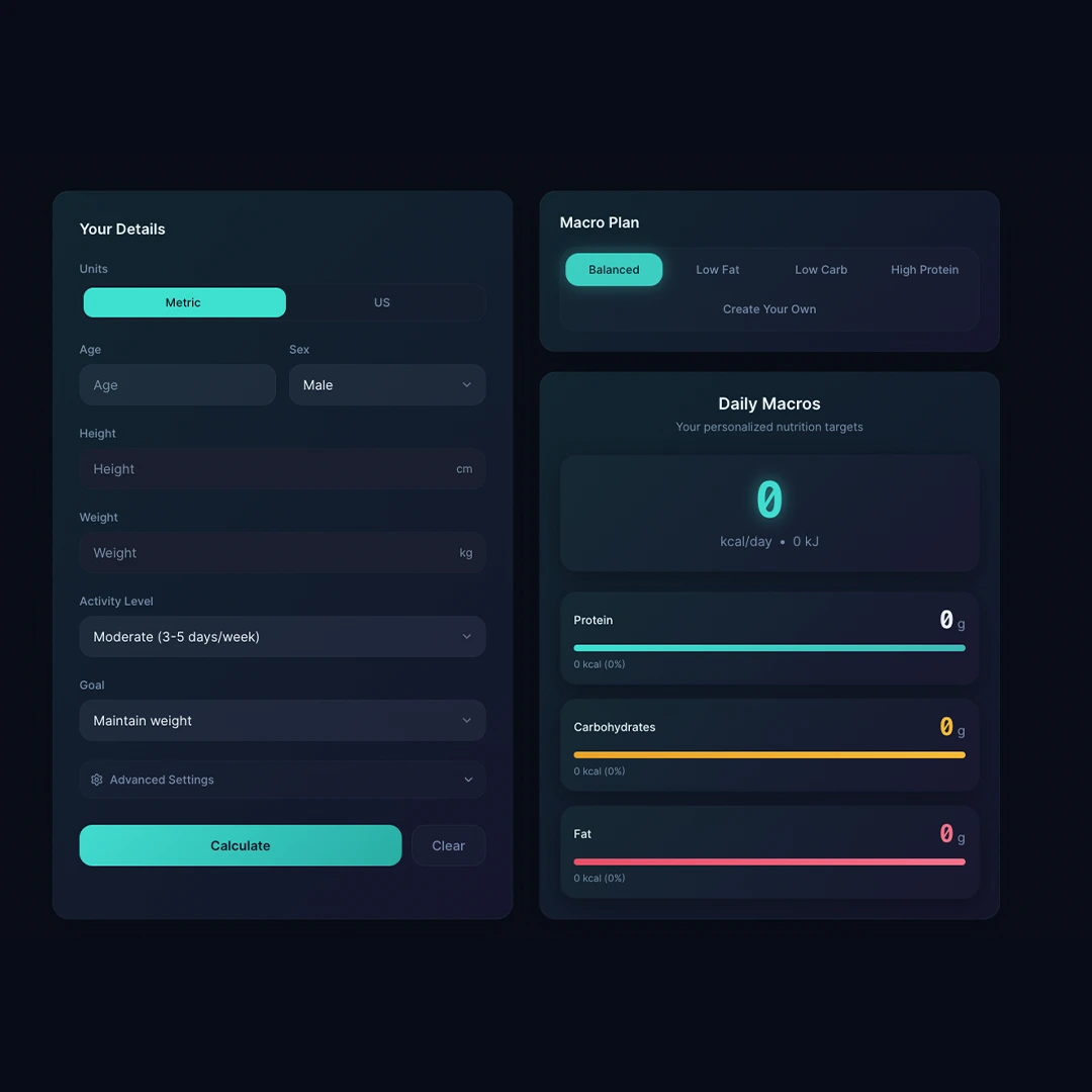 Our online macro calculator is designed for beginners and advanced users alike. Just input your stats and let the tool do the work.
