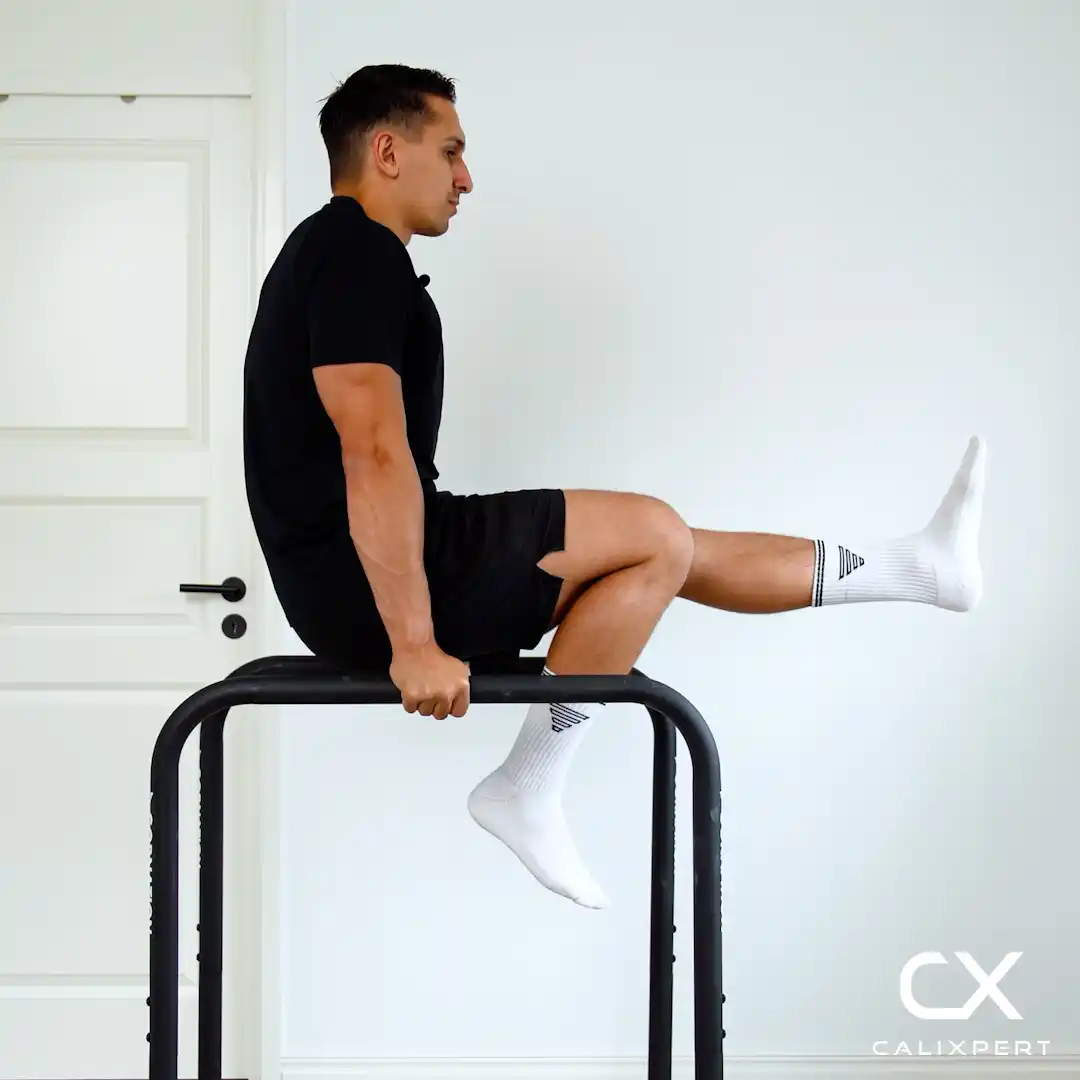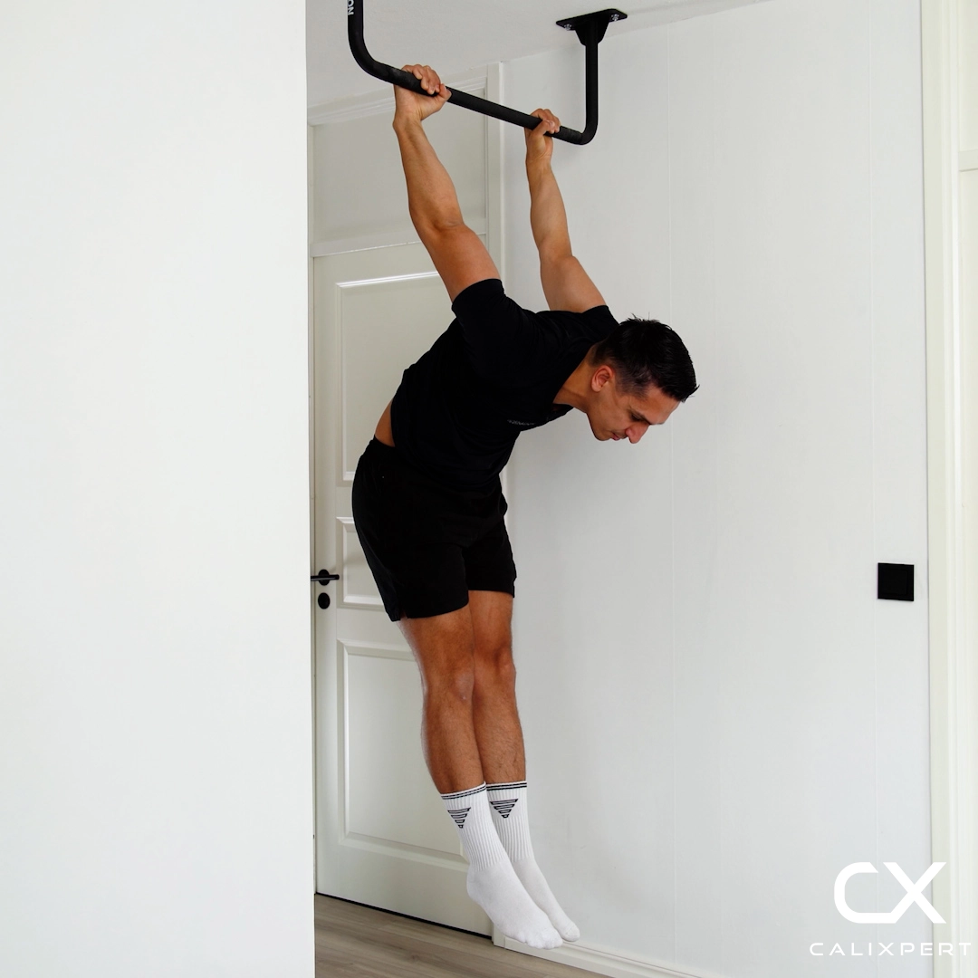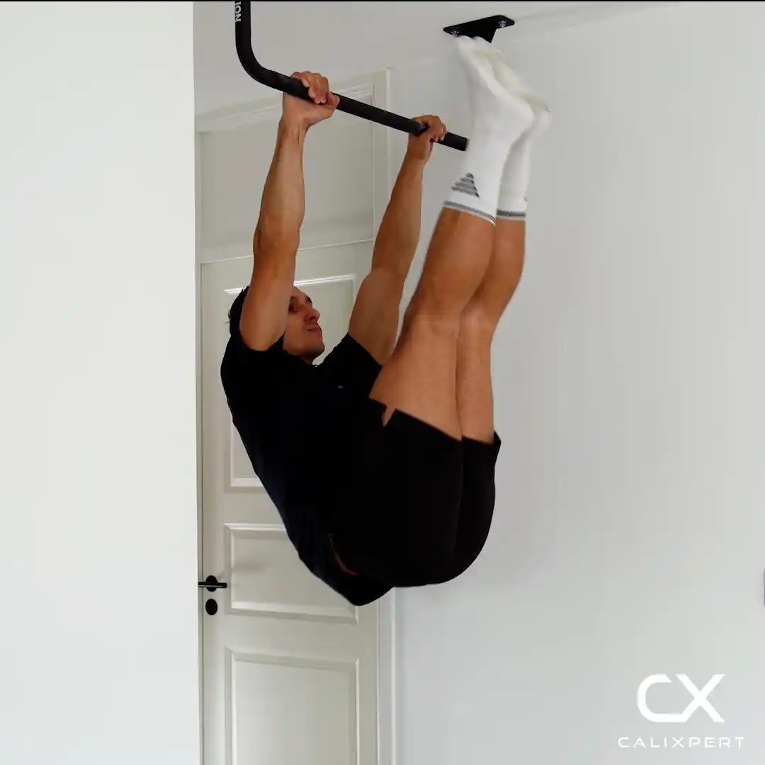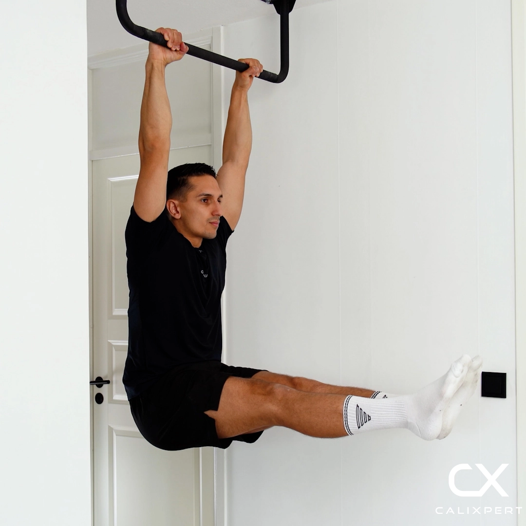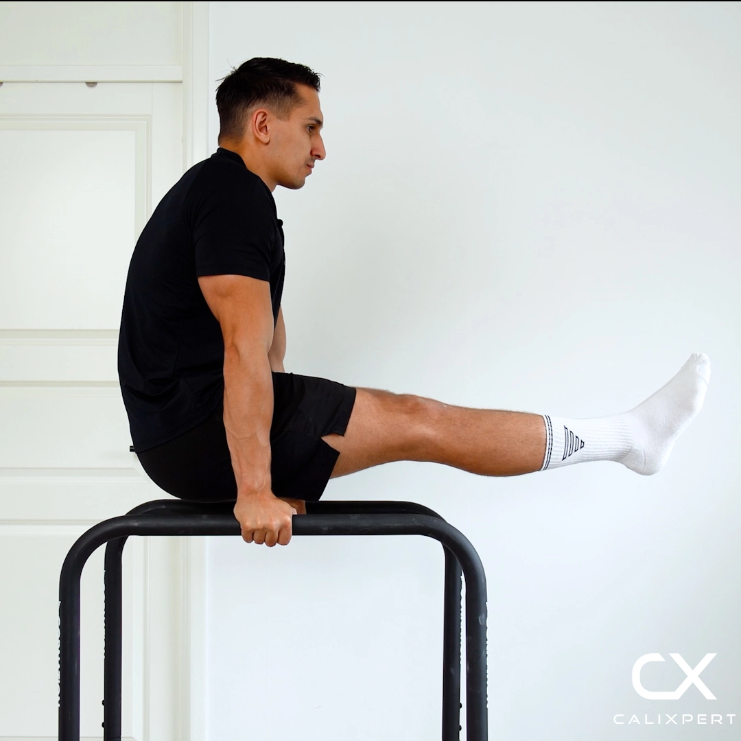 - Once balanced, hold the position with your feet off the ground. Keep your body tight and maintain steady breathing.