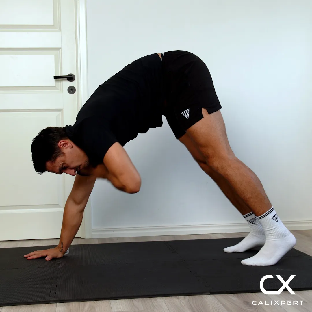- Lean forward slowly, shifting your weight onto your hands. Keep your core engaged and your gaze slightly forward to maintain balance.